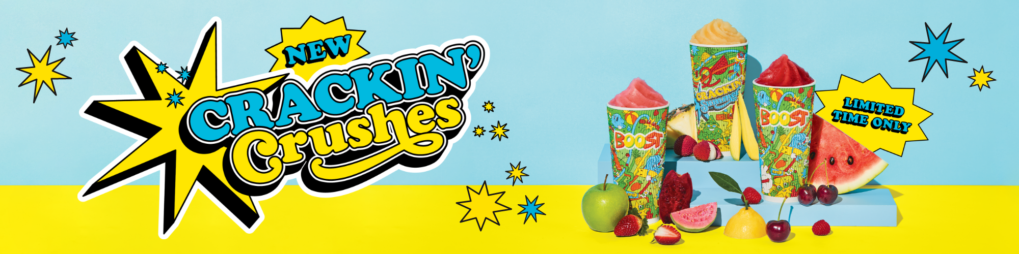 Boost has got all the ingredients for a Crackin' Summer with their three new limited edition Crackin' Crushes that hit all the right spots. Choose from their long list of refreshing ingredients, and they'll guarantee your tastebuds will be satisfied all summer long.
